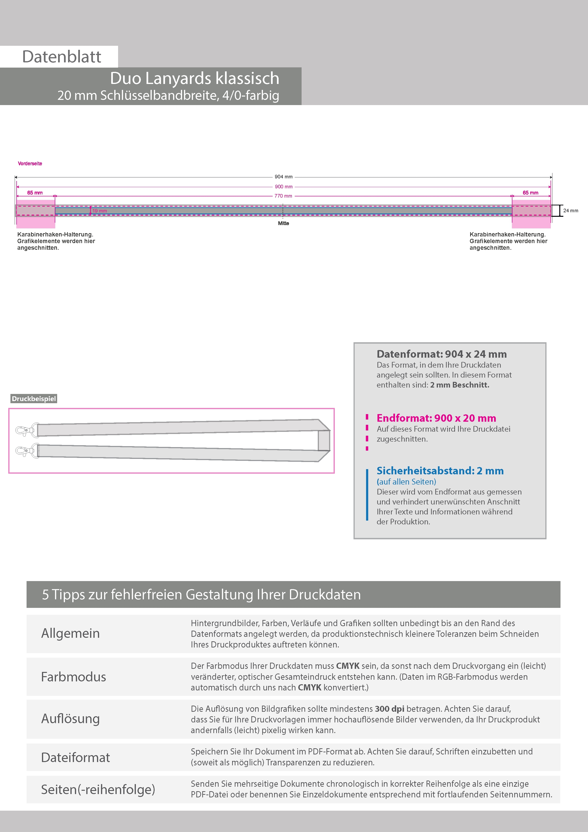 Duo-Lanyards klassisch, 20 mm Schlüsselbandbreite, 4/0-farbig einseitig bedruckt