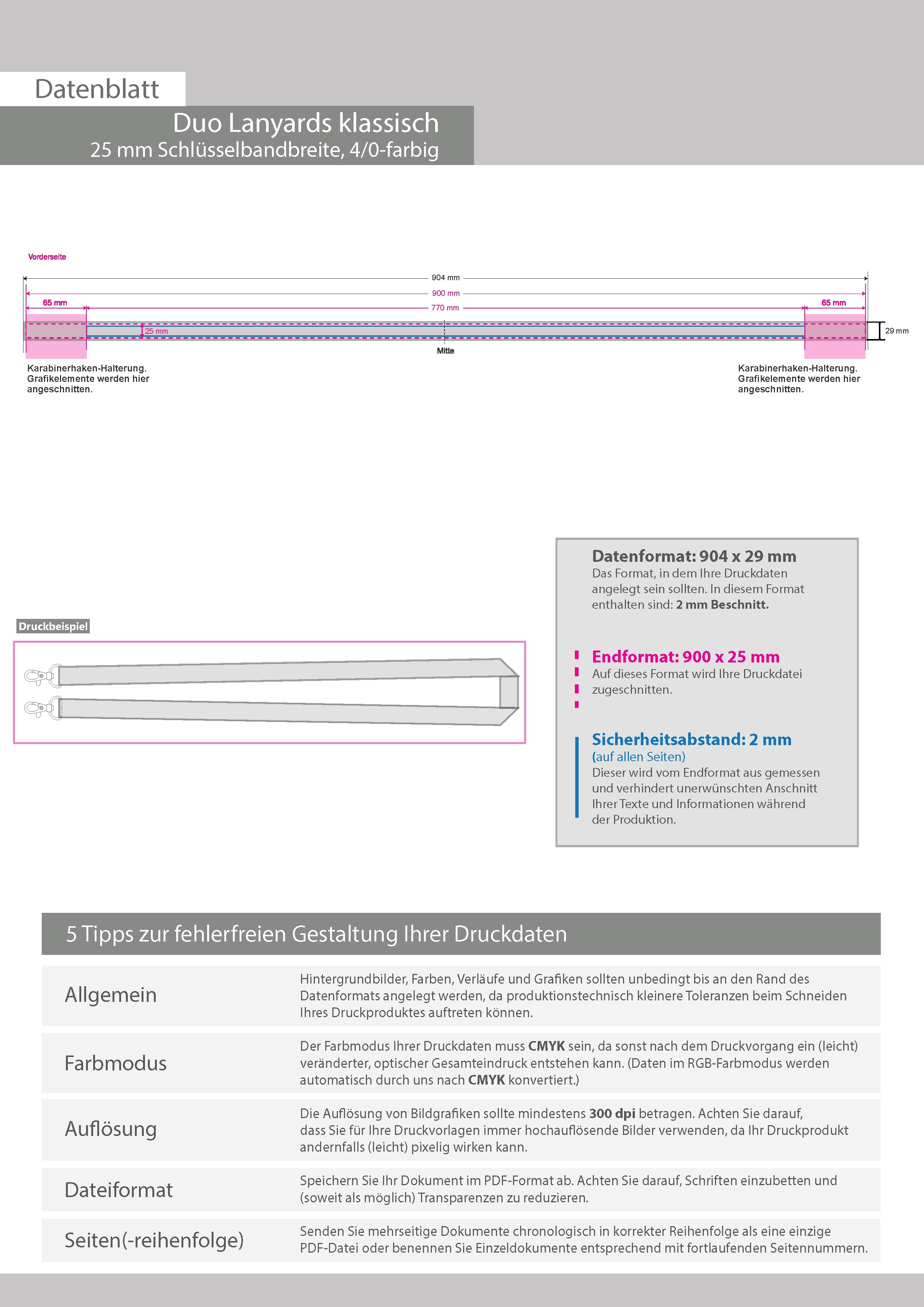 Duo-Lanyards klassisch, 25 mm Schlüsselbandbreite, 4/0-farbig einseitig bedruckt