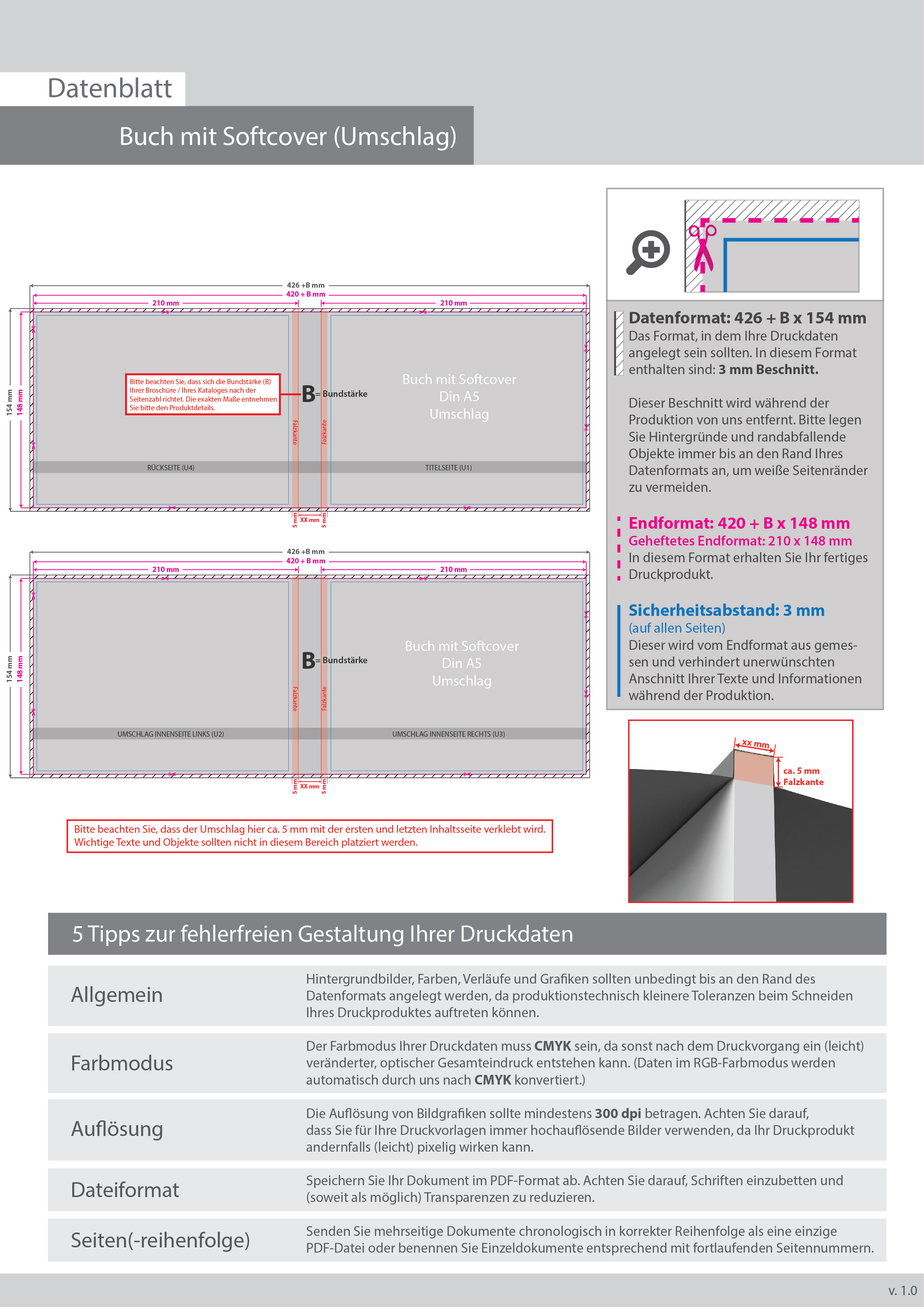 Buch DIN A5 quer, Umschlag: Softcover 4/4-farbig