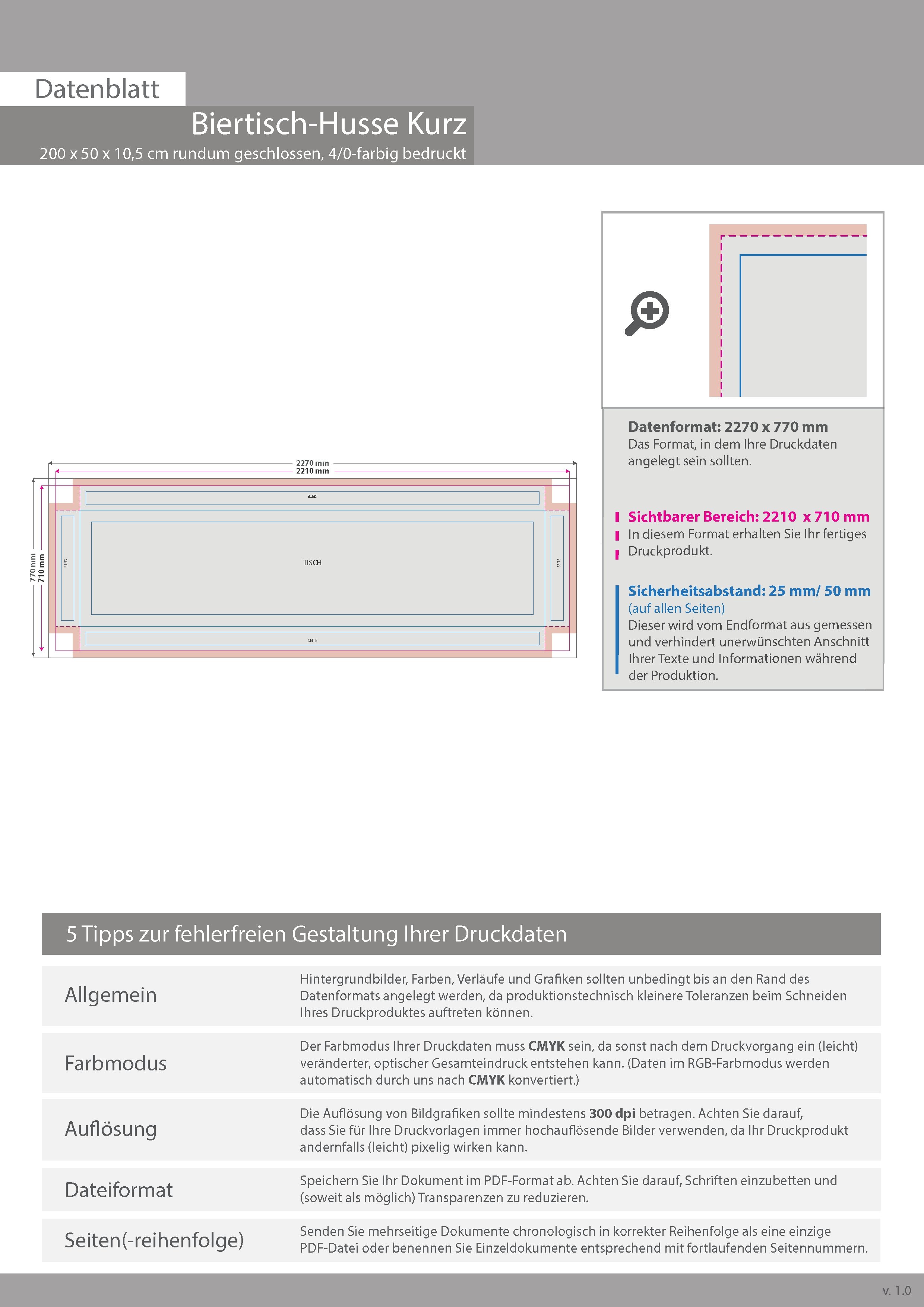 Biertisch-Husse KURZ 200 x 50 x 10,5 cm rundum geschlossen, 4/0-farbig bedruckt